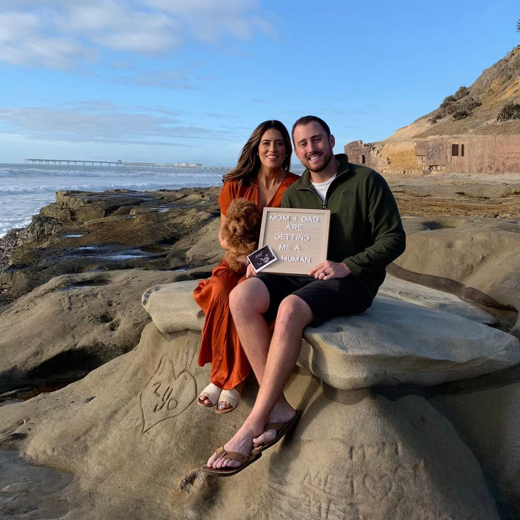 Speaking of sharing news, we have some exciting news of our own: we’re expecting!! dadada is thrilled to welcome our new Brand Ambassador, Kailan! Kailan, her husband Dean, and their Goldendoodle, Spud (pictured above), are expecting to welcome their first baby in just a few short weeks. They’ve invited us to follow their journey into new parenthood, and we’ll be checking in with Kailan on everything from what’s on their registry and nursery wishlist to real-life notes from the motherhood field as she navigates her first year with her daughter.