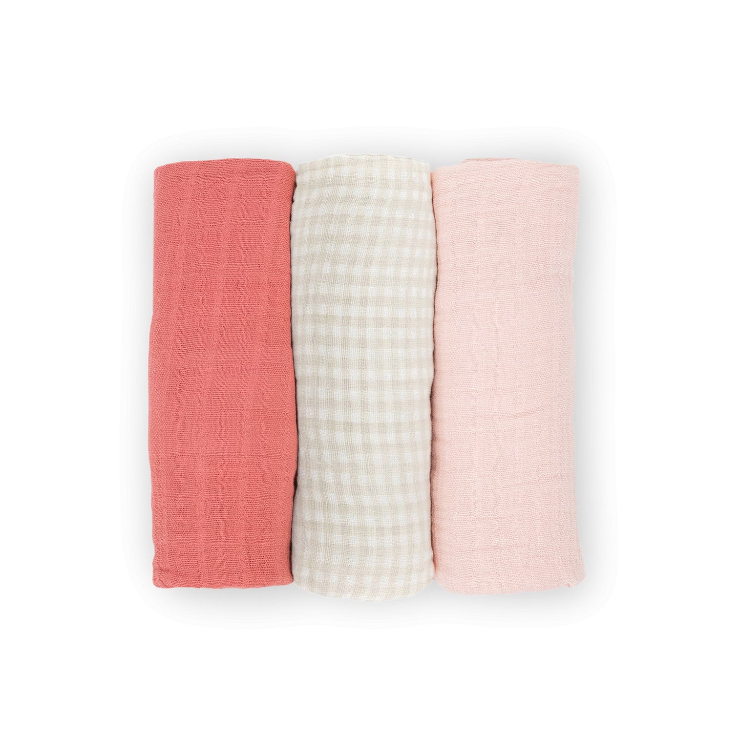 Cotton Muslin Swaddle Blanket 3 Pack - Light Pink