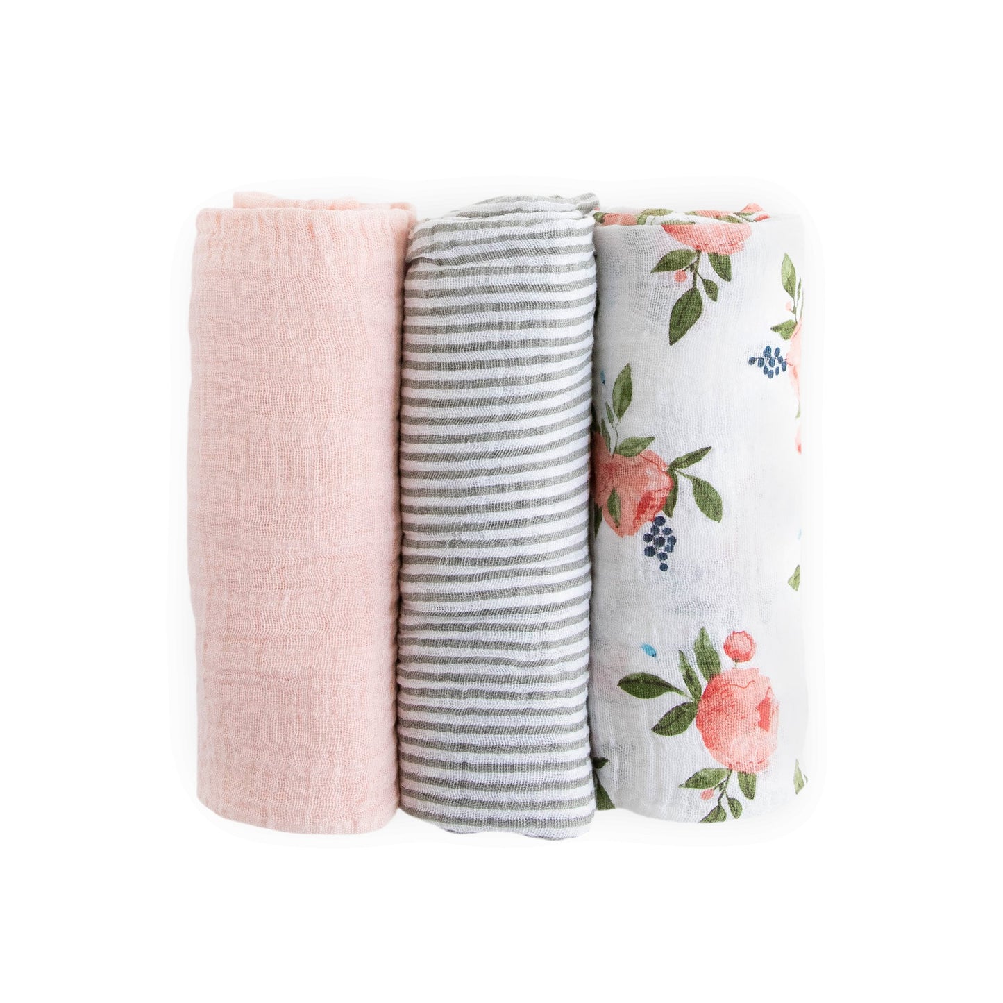 Cotton Muslin Swaddle Blanket 3 Pack - Watercolor Roses